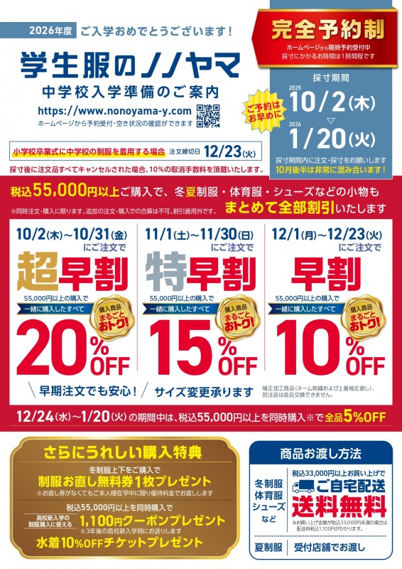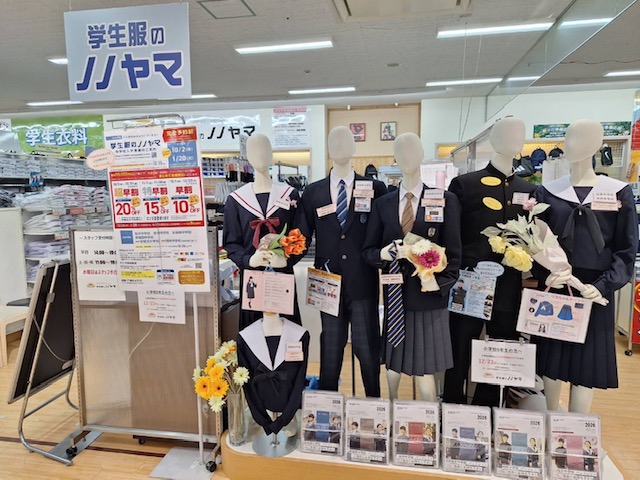 10/2より中学校新入学採寸開始します。準備万端です。