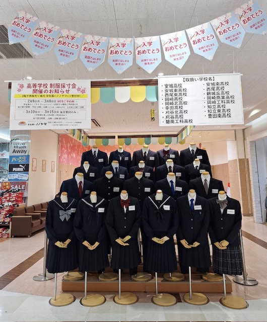 さて、イオンスタイル豊田・アピタ安城南では取扱高校制服を陳列しました。 皆様、是非見に来てください!