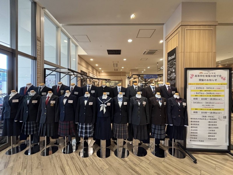 【イオンスタイル豊田:取扱校】豊田西高校・豊田北高校・豊田南高校・豊野高校・豊田高校・豊田東高校・豊田工科高校・衣台高校・岡崎高校・岡崎北高校・岩津高校・愛知総合工科高校・豊明高校・愛教大附属高校/(附属中学校:刈谷・豊田西・愛知総合工科)